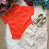 Esse conjunto é a escolha perfeita para os meninos que amam se vestir com estilo e conforto, ideal para aniversários, passeios, eventos e momentos especiais ao ar livre. Camisa:Confeccionada em tecido tipo linho 85% viscose e 15% linho, na cor laranja, possui modelagem moderna com mangas curtas, gola clássica, bolsinho frontal e botões em tom amadeirado, que trazem um toque artesanal e sofisticado. Bermuda:Acompanha bermuda bege de linho com cós elástico e cordão de ajuste 70% poliester, 16% viscose, 11% linho, 3% algodão, garantindo conforto e praticidade. O tecido leve e de toque suave proporciona liberdade de movimento, ideal para dias mais quentes. Destaques: Tecido leve e confortável tipo linho Modelagem moderna e elegante Cós com elástico e cordão regulável Ideal para eventos casuais ou festas ao ar livre Cores neutras e combináveis com diferentes calçados Sugestão de uso: Combine com mocassim ou sandálias infantis para um look completo e encantador! Perfeito para:Batizados, casamentos diurnos, ensaios fotográficos, festas de aniversário e momentos em família.