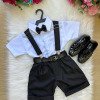 Este conjunto social infantil é a escolha perfeita para deixar os pequenos elegantes e confortáveis em eventos como casamentos, batizados, aniversários, formaturas e cerimônias em geral. Com um visual sofisticado, ele é ideal para quem busca estilo com praticidade. Detalhes do Produto: Camisa social branca de manga curta, confeccionada em microfibra 100% poliéster, com toque macio e caimento leve. Short preto em twill 100% poliéster, com acabamento moderno na barra dobrada. Acompanha gravata borboleta preta, suspensório preto com regulagem e cinto ajustável preto com fivela metálica. Itens Inclusos:CamisaShortGravata borboletaSuspensórioCinto Calçado não incluso – vendido separadamente. Disponivel em nosso site na categoria calçados meninosAs tonalidades das peças podem variar de acordo com as configurações de tela do seu dispositivo.Para garantir o ajuste ideal, consulte sempre a nossa tabela de medidas antes de finalizar a compra. As medidas podem apresentar pequenas variações conforme o lote de fabricação.