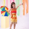 *CALÇADOS E ACESSORIOS NÃO INCLUSOS, VENDIDOS SEPARADAMENTE.* Fantasia Tematica Moana. * Acompanha Colar e Faixa. * Tecido ELENCA gramatura 320 – 100% POLIÉSTER. Mas também dependendo do tamanho da criança. (Conferir tabela de medidas para não ter erros) Cuidado Produto Delicado. Exige cuidado tanto no uso como na lavagem que deve ser feita a mão jamais lavagem a máquinaCuidado ao Vestir a criança se Forçar para entrar ou Puxar com força o tecido pode esgarçar a costura sendo assim NÃO REALIZAREMOS TROCA.   * LEMBRANDO QUE PODERA HAVER VARIAÇÃO DE TONALIDADE DO PRODUTO DEPENDENDO DA TELA DO SEU DISPOSITIVO