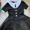 Transforme sua pequena em uma verdadeira integrante da Família Addams com a Fantasia Wandinha! Inspirada na icônica personagem, essa fantasia traz um visual sombrio e elegante, perfeito para festas temáticas, Halloween, ou momentos de pura diversão.   Detalhes do produto:   Material: Tecido confortável e durável, ideal para garantir liberdade nos movimentos. Design único: Vestido preto com gola e punhos brancos, inspirado no clássico visual da personagem.   Destaques:   Ideal para Halloween, festas temáticas ou sessões de fotos. Traje icônico que recria o estilo misterioso e irreverente da Wandinha. Estimula a imaginação, permitindo às meninas explorar o universo da Família Addams. Deixe sua pequena esbanjar personalidade e mistério com a Fantasia Wandinha! ????????
