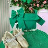 Um vestido encantador, pensado para brilhar nas celebrações de fim de ano!  Detalhes do modelo: Mangas princesa que trazem delicadeza e um toque clássico; Comprimento midi, perfeito para elegância e conforto; Saia com camadas de tule de glitter, proporcionando leveza e brilho especial em cada movimento; Cinto em pérolas, que valoriza a cintura e acrescenta sofisticação; Laço lateral delicado, que finaliza o visual com charme.   Ideal para a Coleção Natal, esse modelo une a magia da data com a delicadeza dos detalhes, transformando cada menina em uma verdadeira princesa natalina. Atenção:   As medidas podem variar em até 2cm. Recomendamos sempre consultar a tabela de medidas antes da compra para evitar erros. Para um volume extra, indicamos o uso de saiote de armação, vendido separadamente na categoria acessórios. Tiara e outros acessórios não acompanham o produto, mas estão disponíveis em nosso site. Calçado vendido separadamente, disponível na seção de calçados.As cores do produto podem sofrer variações de tonalidade conforme a configuração da tela do seu dispositivo.