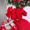Um vestido encantador, pensado para brilhar nas celebrações de fim de ano! Detalhes do modelo: Mangas princesa que trazem delicadeza e um toque clássico; Comprimento midi, perfeito para elegância e conforto; Saia com camadas de tule de glitter, proporcionando leveza e brilho especial em cada movimento; Cinto em pérolas, que valoriza a cintura e acrescenta sofisticação; Laço lateral delicado, que finaliza o visual com charme. Ideal para a Coleção Natal, esse modelo une a magia da data com a delicadeza dos detalhes, transformando cada menina em uma verdadeira princesa natalina. Atenção: As medidas podem variar em até 2cm. Recomendamos sempre consultar a tabela de medidas antes da compra para evitar erros. Para um volume extra, indicamos o uso de saiote de armação, vendido separadamente na categoria acessórios. Tiara e outros acessórios não acompanham o produto, mas estão disponíveis em nosso site. Calçado vendido separadamente, disponível na seção de calçados.As cores do produto podem sofrer variações de tonalidade conforme a configuração da tela do seu dispositivo.
