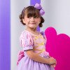 Vestido/Fantasia Infantil Rapunzel Luxo Um verdadeiro conto de fadas transformado em vestido! Inspirado na doce e sonhadora Princesa Rapunzel, este modelo é perfeito para meninas que amam brilho, cor e encanto. Com saia ampla e armada em camadas de tule lilás cintilante, o vestido cria um efeito leve e mágico a cada movimento. O corpete rosa possui fitas douradas cruzadas e flores de cetim aplicadas nas mangas bufantes e na cintura, trazendo o romantismo e a delicadeza que marcam a princesa dos cabelos dourados. O visual é finalizado com um laço de cabelo rosa com detalhe perolado, combinando perfeitamente com o vestido e garantindo um toque de charme e sofisticação. Destaques: Modelo inspirado na Princesa Rapunzel Flores de cetim rosa e lilás com acabamento artesanal Fitas douradas cruzadas no corpete Tule lilás com brilho suave e caimento leve Ideal para festas, ensaios fotográficos e aniversários temáticos Informações Importantes As medidas podem variar em até 2cm. Recomendamos sempre consultar a tabela de medidas antes da compra para evitar erros. Tecido Tecnosport 100% poliester Para um volume extra, indicamos o uso de saiote de armação, vendido separadamente na categoria Acessórios. Tiara e outros acessórios não acompanham o produto, mas estão disponíveis em nosso site. Calçado vendido separadamente, disponível na categoria Calçados As cores do produto podem sofrer variações de tonalidade conforme a configuração da tela do seu dispositivo.