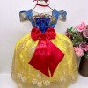 Encante-se com o Vestido Temático Princesa Branca de Neve Luxo Um modelo sofisticado e cheio de detalhes que trazem a magia dos contos de fadas para a sua princesa! Parte superior em azul royal com renda bordadas em dourados delicados e transparência nos ombros, trazendo charme e elegância. Saia amarela rodada com acabamento em renda bordada em dourado, criando um efeito de brilho e movimento encantador. Cinto vermelho com strass, que destaca a cintura e adiciona o toque clássico da Branca de Neve. Ideal para festas temáticas, aniversários, ensaios fotográficos ou para realizar o sonho de viver um dia de princesa. Tecido 100% poliester. Um vestido cheio de magia, pronto para transformar momentos especiais em memórias inesquecíveis. Informações Importantes As medidas podem variar em até 2cm. Recomendamos sempre consultar a tabela de medidas antes da compra para evitar erros. Para um volume extra, indicamos o uso de saiote de armação, vendido separadamente na categoria Acessórios. Tiara e outros acessórios não acompanham o produto, mas estão disponíveis em nosso site. Calçado vendido separadamente, disponível na categoria Calçados As cores do produto podem sofrer variações de tonalidade conforme a configuração da tela do seu dispositivo.