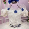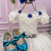 Confeccionado em tecido misto possui forro em poliéster e algodão para não incomodar a criança e proporcionando um caimento incrível e sofisticado, possui gola redonda, comprimento médio, mangas curtas, possui elástico nas costas para melhor ajuste, acabamento com lindo laço na parte posterior do vestido completa o look dos sonhos!   * Medidas podem variar em até 4cm * Caso queira o vestido mais armado, recomendamos o uso do saiote ou anágua de armação, disponível no nosso site na categoria acessórios. * Tiara vendida separadamente, disponível em nosso site na categoria acessórios. * Calçados vendido separadamente, disponível em nosso site na categoria calçados. * LEMBRANDO QUE PODERA HAVER VARIAÇÃO DE TONALIDADE DO PRODUTO DEPENDENDO DA TELA DO SEU DISPOSITIVO