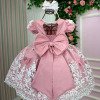 COMPOSIÇÃO: 100% POLIESTER – RENDAColeção Atelie aproximadamente 50 apliques por vestido. Entre Flores e Borboletas. Confeccionado em tecido misto possui forro em poliéster e algodão para não incomodar a criança e proporcionando um caimento incrível e sofisticado, possui gola redonda, comprimento médio, mangas curtas,  contém, também, elástico nas costas para melhor ajuste, acabamento com lindo laço na parte posterior do vestido completa o look dos sonhos!   JARDIM DAS BORBOLETAS,JARDIM ENCNATADO,ATELIE,BOSQUE ENCANTADO,BORBOLETA,BORBOLETAS     * Medidas podem variar em até 4cm. * Caso queira o vestido mais armado, recomendamos o uso do saiote ou anágua de armação, disponível no nosso site na categoria acessórios. * Tiara vendida separadamente, disponível em nosso site na categoria acessórios. * Calçados vendido separadamente, disponível em nosso site na categoria calçados.* Detalhes da Borboletas pode variar entre as cores Rose e Branca * LEMBRANDO QUE PODERA HAVER VARIAÇÃO DE TONALIDADE DO PRODUTO DEPENDENDO DA TELA DO SEU DISPOSITIVO