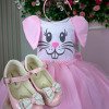 Confeccionado em tecido misto possui forro em poliéster e algodão para não machucar a criança e proporcionando um caimento incrível e sofisticado, possui gola redonda, comprimento médio, possui elástico nas costas para melhor ajuste, acabamento com lindo laço na parte posterior do vestido completa o look dos sonhos! COELHO COELHINHA PASCOA CINTO PEROLAS OVOS * Medidas podem variar em até 4cm * Caso queira o vestido mais armado, recomendamos o uso do saiote ou anágua de armação, disponível no nosso site na categoria acessórios. * Tiara vendida separadamente, disponível em nosso site na categoria acessórios.* Calçados vendido separadamente, disponível em nosso site na categoria calçados.