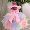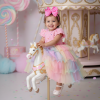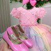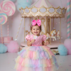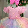 Vestido Aurora – Um arco-íris de encanto em cada camada!  Um modelo que parece ter sido retirado direto de um sonho açucarado. O Vestido Aurora é perfeito para quem ama cor, leveza e aquele toque mágico que transforma qualquer festa em um espetáculo. Com sua paleta candy super suave e a saia em camadas de tule multicolorido, ele combina com vários temas infantis, criando um visual cheio de fantasia e alegria. Detalhes que fazem brilhar: • Busto matelassado com aplicação de bolinhas coloridas, deixando tudo ainda mais lúdico• Manguinhas fofas com pompons delicados• Cintura bordada em pérolas rosadas para um charme extra• <strong data-start="788" data-end="828" data-is- Temas perfeitos para usar o Aurora:Chuva de Benção, Chuva de Amores, Circo, Candy, Doceria, Tie Dye, Unicórnio, Arco Iris e Fest Colors.   <p data-start="1076" data-end="1193" data-is-last-node="" data-is-   Informações Importantes  As medidas podem variar em até 2cm. Recomendamos sempre consultar a tabela de medidas antes da compra para evitar erros.  Tecido 100% poliester Para um volume extra, indicamos o uso de saiote de armação, vendido separadamente na categoria Acessórios. Tiara e outros acessórios não acompanham o produto, mas estão disponíveis em nosso site. Calçado vendido separadamente, disponível na categoria Calçados As cores do produto podem sofrer variações de tonalidade conforme a configuração da tela do seu dispositivo.       <p data-start="1076" data-end="1193" data-is-last-node="" data-is-
