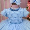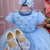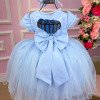 Vestido Menina Bonita Azul Bebe Florzinha Peito Tule