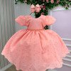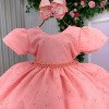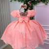 TECIDO LESE: 90% Poliester 10% AlgodãoConfeccionado em tecido misto possui forro em poliéster e algodão para não incomodar a criança e proporcionando um caimento incrível e sofisticado, possui gola redonda, comprimento médio, mangas curtas,  contém, também, elástico nas costas para melhor ajuste, acabamento com lindo laço na parte posterior do vestido completa o look dos sonhos!   * Medidas podem variar em até 4cm. * Caso queira o vestido mais armado, recomendamos o uso do saiote ou anágua de armação, disponível no nosso site na categoria acessórios. * Tiara vendida separadamente, disponível em nosso site na categoria acessórios. * Calçados vendido separadamente, disponível em nosso site na categoria calçados. * LEMBRANDO QUE PODERA HAVER VARIAÇÃO DE TONALIDADE DO PRODUTO DEPENDENDO DA TELA DO SEU DISPOSITIVO