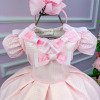 Vestido Miss Sweet Rosa Bebe Lacinhos