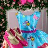 TECIDO 100% POLIÉSTER Confeccionado em tecido misto possui forro em poliéster e algodão para não incomodar a criança e proporcionando um caimento incrível e sofisticado, possui gola redonda, comprimento médio, mangas curtas,  contém, também, elástico nas costas para melhor ajuste, acabamento com lindo laço na parte posterior do vestido completa o look dos sonhos!   * Medidas podem variar em até 4cm. * Caso queira o vestido mais armado, recomendamos o uso do saiote ou anágua de armação, disponível no nosso site na categoria acessórios. * Tiara vendida separadamente, disponível em nosso site na categoria acessórios. * Calçados vendido separadamente, disponível em nosso site na categoria calçados.* LEMBRANDO QUE PODERA HAVER VARIAÇÃO DE TONALIDADE DO PRODUTO DEPENDENDO DA TELA DO SEU DISPOSITIVO