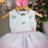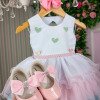 TECIDO TULE E 100% POLIESTER P até 4 meses M até 7 meses G até 12 meses Isso é aproximadamente,sempre importante ir pela tabela de medidas para não ter erro Confeccionado em tecido misto possui forro em poliéster e algodão para não incomodar a criança e proporcionando um caimento incrível e sofisticado, possui gola redonda,comprimento médio, mangas curtas, acabamento com lindo laço na parte posterior do vestido completa o look dos sonhos! FLORISTA,FESTA,LUXO,JARDIM ENCANTADDO,BORBOLETA,FLORESTA ENCANTADA,BABY,BEBE,BEBÊ,BATA,BATINHA,CORAÇÕES,CORAÇÃO * Medidas podem variar em até 4cm. * Caso queira o vestido mais armado, recomendamos o uso do saiote ou anágua de armação, disponível no nosso site na categoria acessórios.* Tiara vendida separadamente, disponível em nosso site na categoria acessórios. * Calçados vendido separadamente, disponível em nosso site na categoria calçados.* Asa vendida separadamente, disponível em nosso site na categoria Outros – Asas de borboleta. * LEMBRANDO QUE PODERA HAVER VARIAÇÃO DE TONALIDADE DO PRODUTO DEPENDENDO DA TELA DO SEU DISPOSITIVO