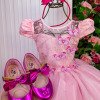 TECIDO 100% POLIESTEROBS: RENDA PODE SER VARIADAConfeccionado em tecido misto possui forro em poliéster e algodão para não incomodar a criança e proporcionando um caimento incrível e sofisticado, possui gola redonda, comprimento médio, mangas curtas, possui elástico nas costas para melhor ajuste, acabamento com lindo laço na parte posterior do vestido completa o look dos sonhos! * Medidas podem variar em até 4cm * Caso queira o vestido mais armado, recomendamos o uso do saiote ou anágua de armação, disponível no nosso site na categoria acessórios. * Tiara vendida separadamente, disponível em nosso site na categoria acessórios. * Calçados vendido separadamente, disponível em nosso site na categoria calçados. * LEMBRANDO QUE PODERA HAVER VARIAÇÃO DE TONALIDADE DO PRODUTO DEPENDENDO DA TELA DO SEU DISPOSITIVO